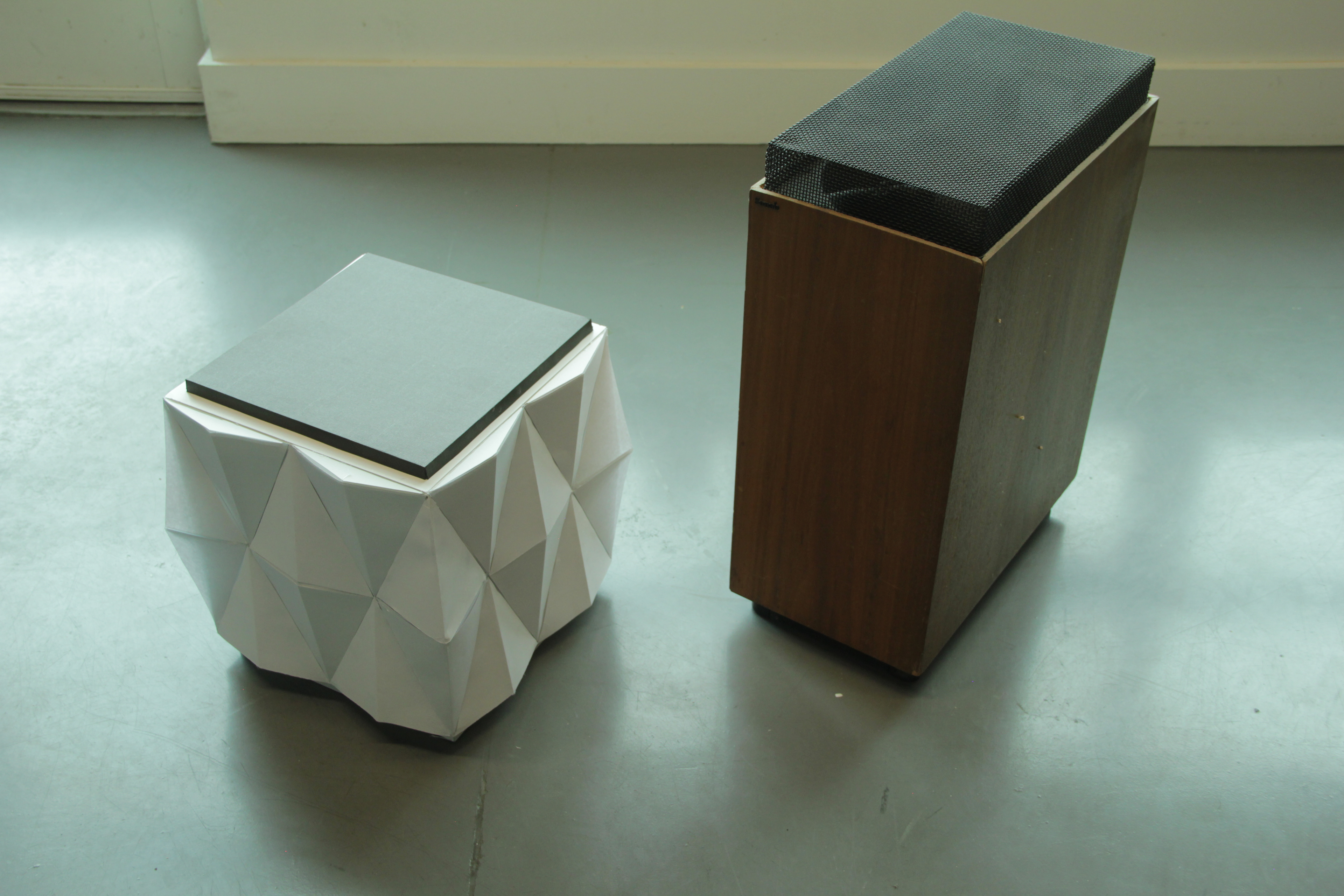 To the right of my prototype lies its older brother, the Sonab OA-14. This was one of Carlsson's most successful products. Placed in the corner of a room, the sound fills the entire room with crisp and clear audio, a surreal experience for something that was built decades ago the 70s